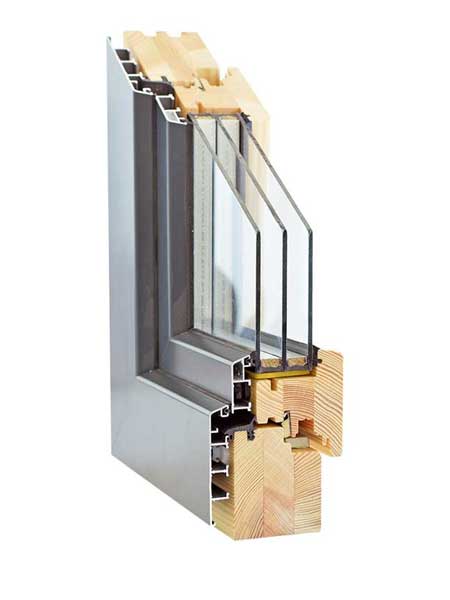 Das für die Herstellung verwendete Holz ist vollständig durch eine Aluminiumabdeckung geschützt, und die gesamte Struktur erhält eine hohe Wärmedämmung und ein attraktives Aussehen.
